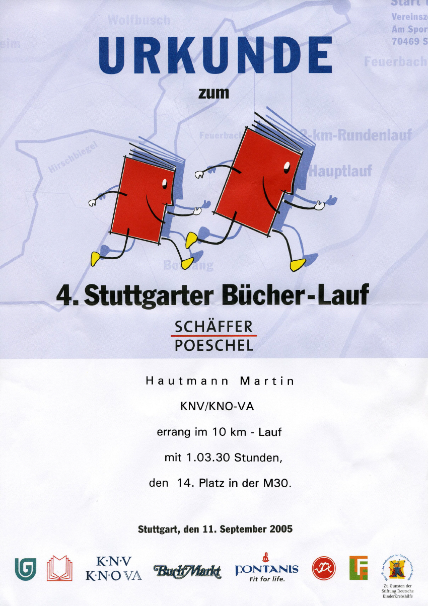 Teilnahme am Bücherlauf 11.09.2005 über 10 km Zeit 1.03,30 min