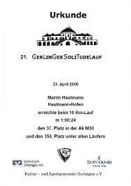 Teilnahme am Solitudelauf über 10 km am 23.04.2006 in 1.00,24 min